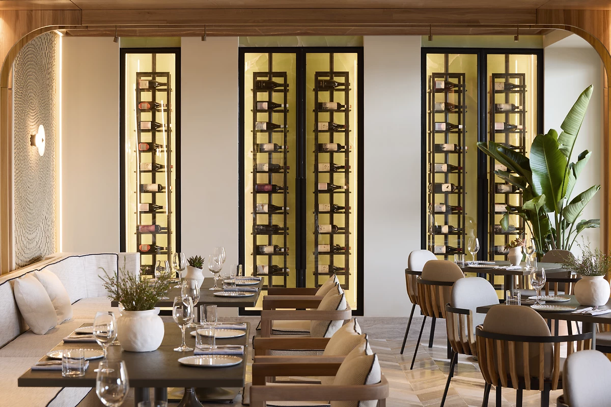 Saveur5 restaurants : le Pangea et ses grands buffets de cuisine internationale, la Taverna à l'ambiance grecque avec ses spécialités crétoises revisitées, l'Océan qui propose des saveurs méditerranéennes pour les palais les plus exigeants, The Beach House, le grill installé les pieds dans l'eau et le RHO propose une interprétation toute contemporaine avec des créations de poissons et viandes crus.