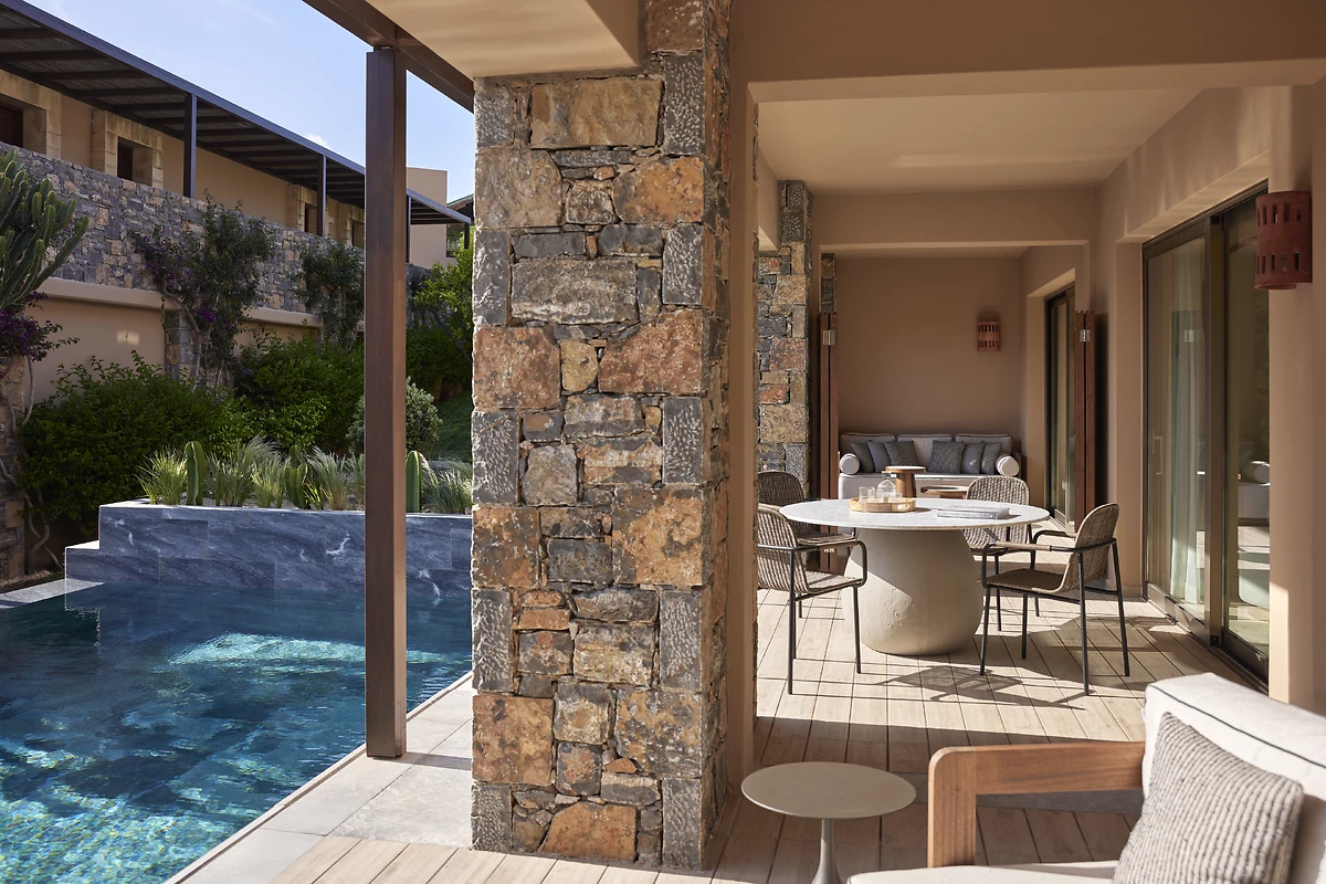 Blottie à flanc de colline dans un paysage gorgé de soleil, votre chambre, suite ou villa se fait la promesse d'une évasion immobile sur la mer de Crète. À l'image du fort caractère de l'île, chaque unité arbore des courbes épurées alliées à des matières brutes. Le restaurant Ocean vous accueille en juxtaposant authenticité crétoise et design élégant et vous propose une expérience culinaire sophistiquée grâce au menu élaboré par Ducasse Conseil. Au Wellness Center, véritable sanctuaire zen, vous succomberez aux bienfaits de soins signés KEPOS by GOCO® et de rituels crétois traditionnels.