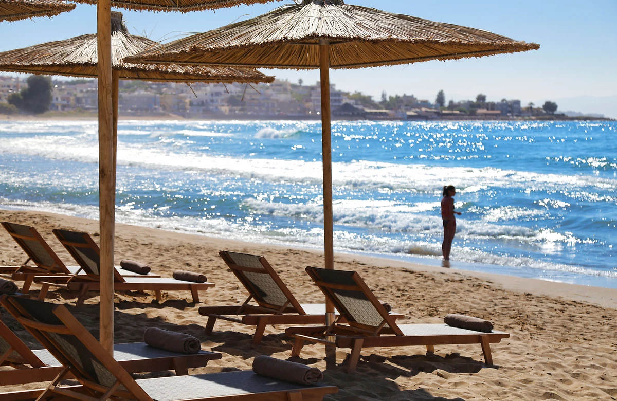 Nautique- Plage : Plage de sable équipée de transats et parasols, en libre accès.