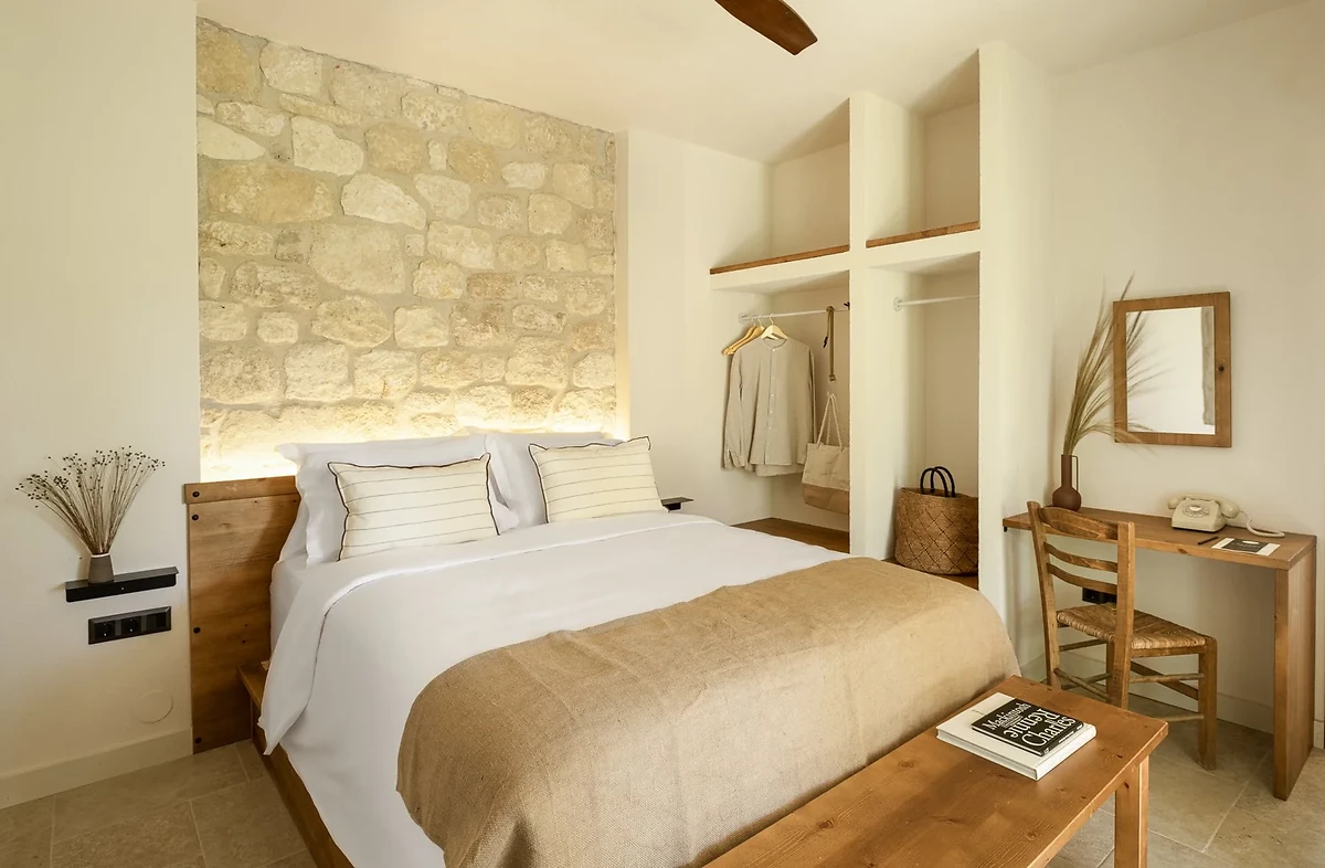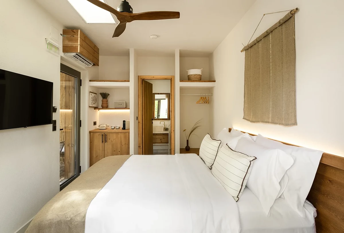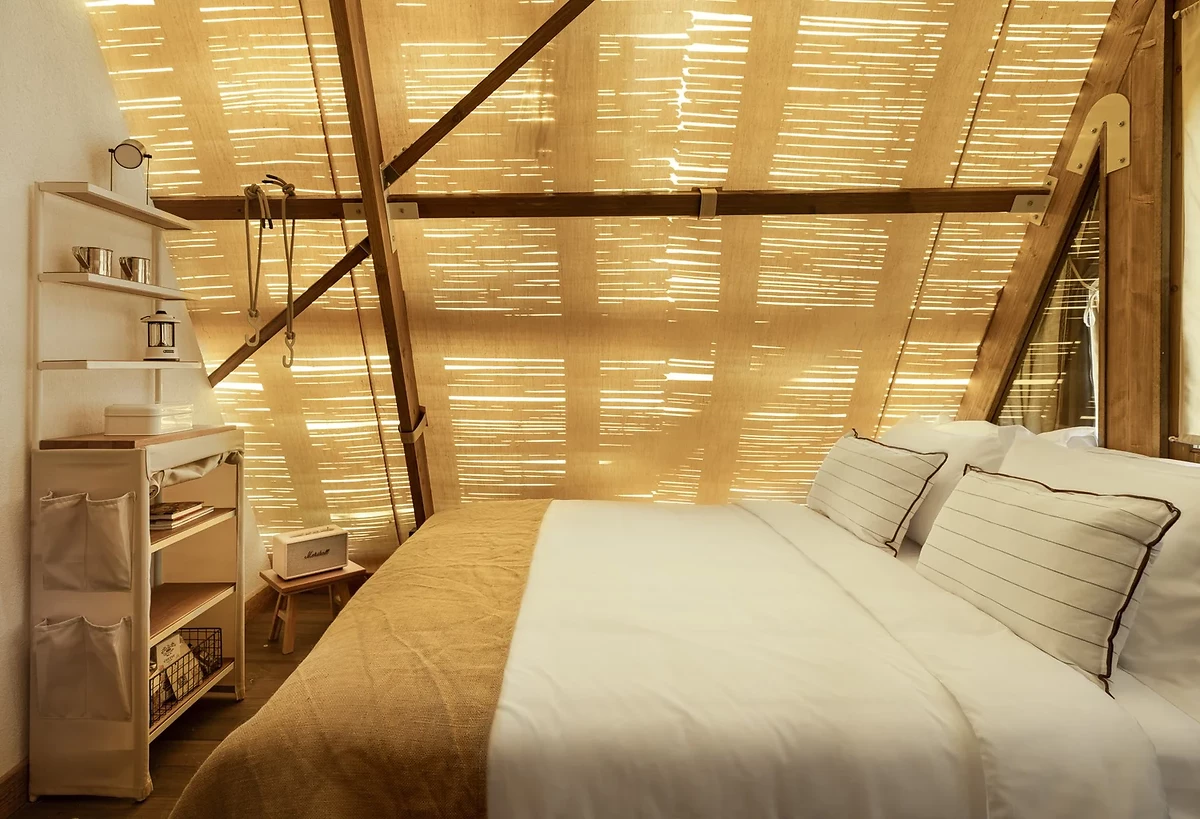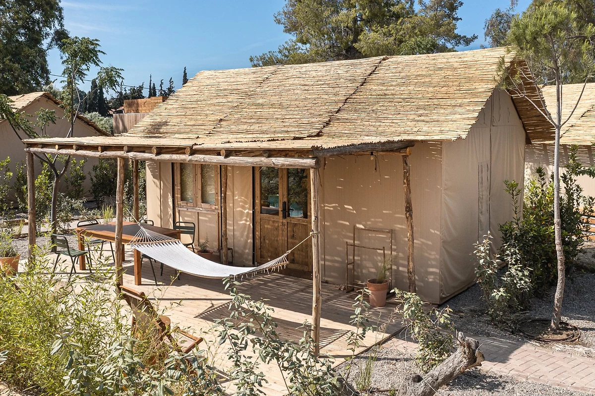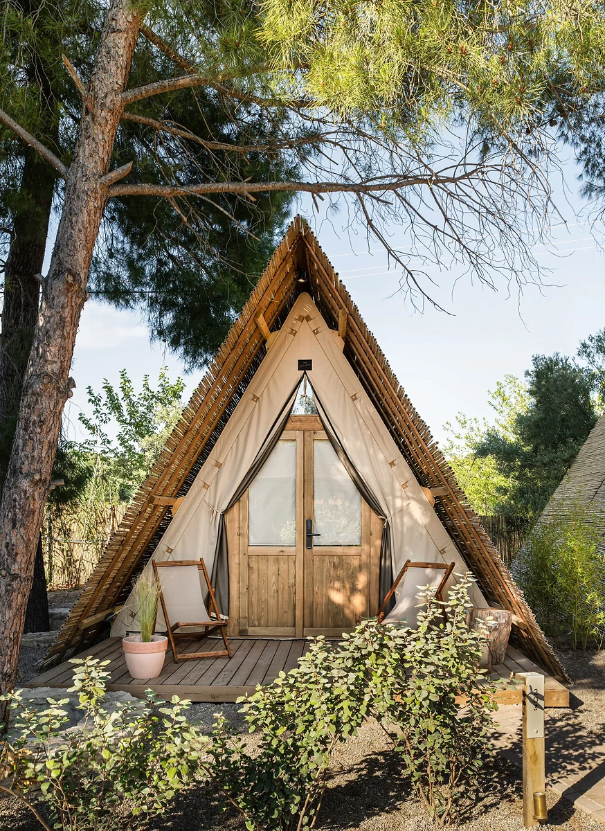 L'hôtel dispose de 36 hébergements au design affirmé, dans un style glamping, tous proche de la plage. Chaque logement est lumineux et offre tout le confort moderne : climatisation, ventilateur, minibar avec des produits Ergon®, machine à café expresso, enceinte Marshall® bluetooth, télévision, douche à effet pluie, sèche-cheveux, téléphone, coffre-fort, WiFi.