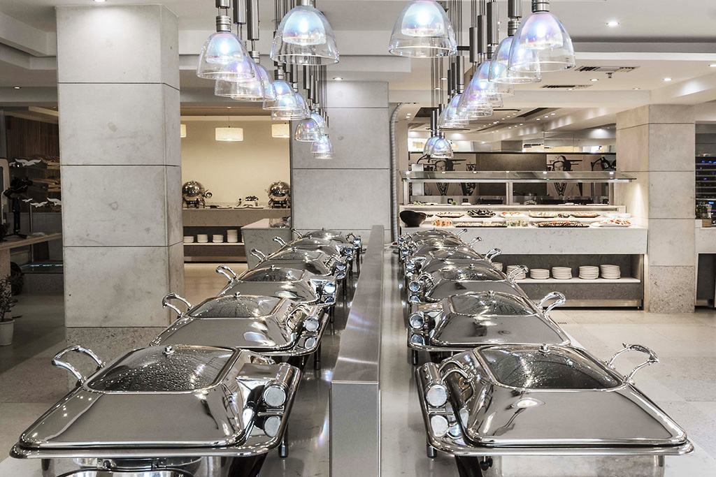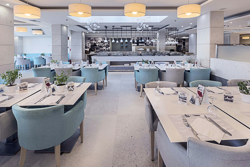 • Le restaurant propose des buffets riches en saveurs crétoises, méditerranéennes et internationales, ainsi que des spectacles culinaires quotidiens. Les clients peuvent également demander un petit-déjeuner anticipé ou une boîte à lunch pour leurs excursions. En outre, chaque mardi à 20h00, une soirée « Nuit crétoise » avec musique live et danses traditionnelles est organisée au restaurant.