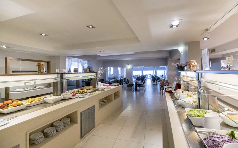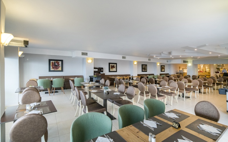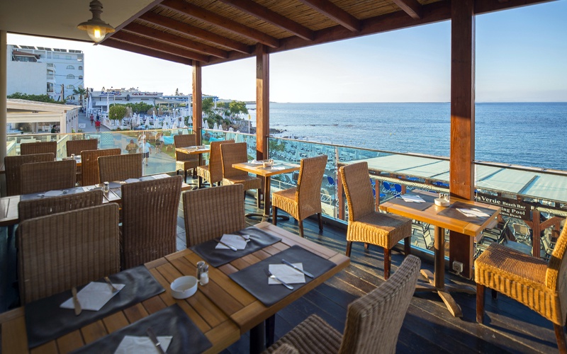 1 restaurant principal servant des repas sous forme de buffet proposant une cuisine méditerranéenne et internationale. 1 Lounge Bar le « Golden Bar », 1 beach bar restaurant le « Plaza Verde ». Tenue correcte exigée le soir, pantalon obligatoire pour les messieurs. Les boissons sont payantes pour les personnes en demi-pension