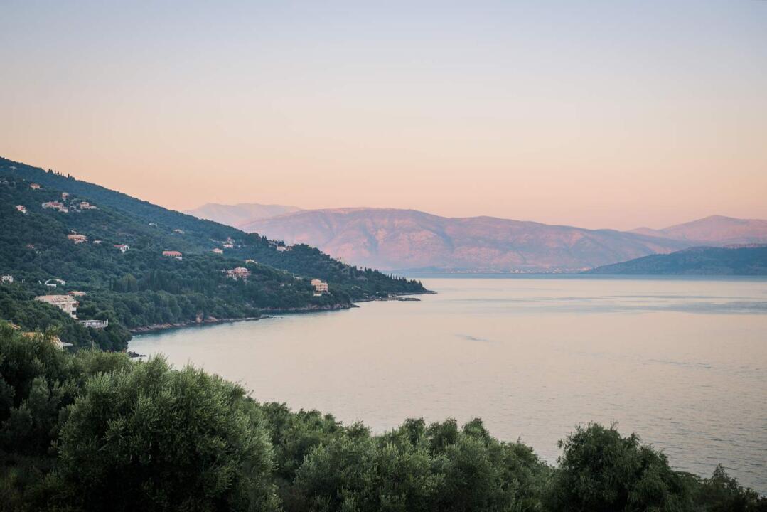 Depuis Barbati admirez une vue imprenable sur la vieille ville de Corfou, la forteresse vénitienne et les montagnes albanaises.