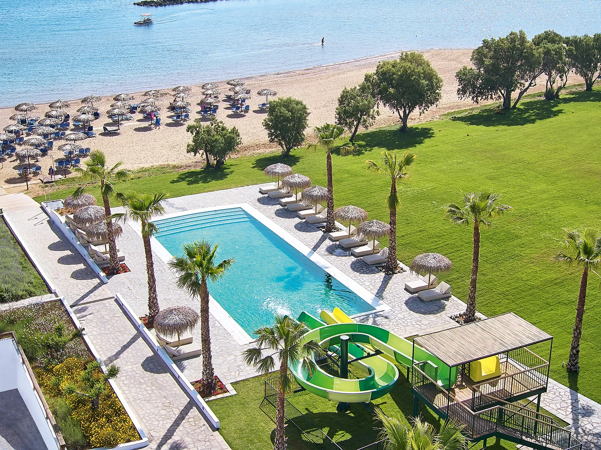 Au nord du Péloponnèse, à 1 h 30 seulement du site d'Olympie, sur la magnifique plage de sable fin de Lakopetra, venez profiter des beaux jardins et de l'ambiance paisible du Grecotel Casa Marron. Cet hôtel, construit dans un style bohème-chic, propose de nombreuses activités qui raviront petits et grands. Il est proposé avec une formule tout compris très complète pour vous faire passer les meilleures vacances possibles.