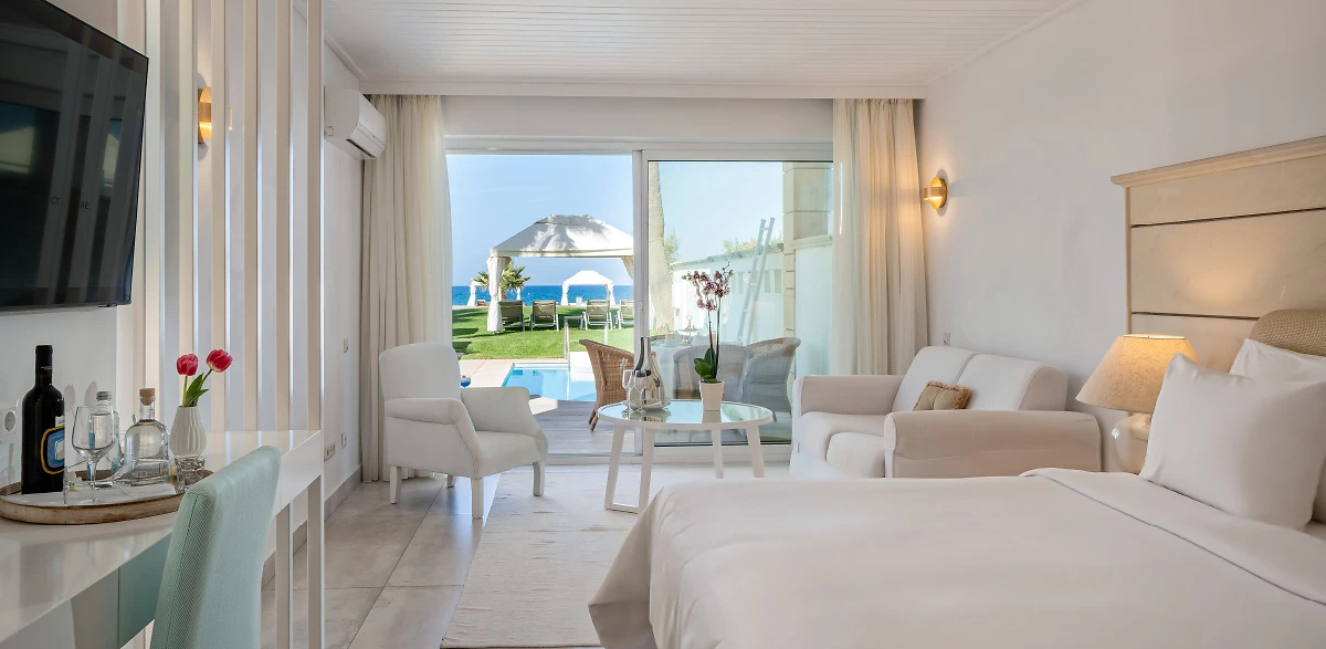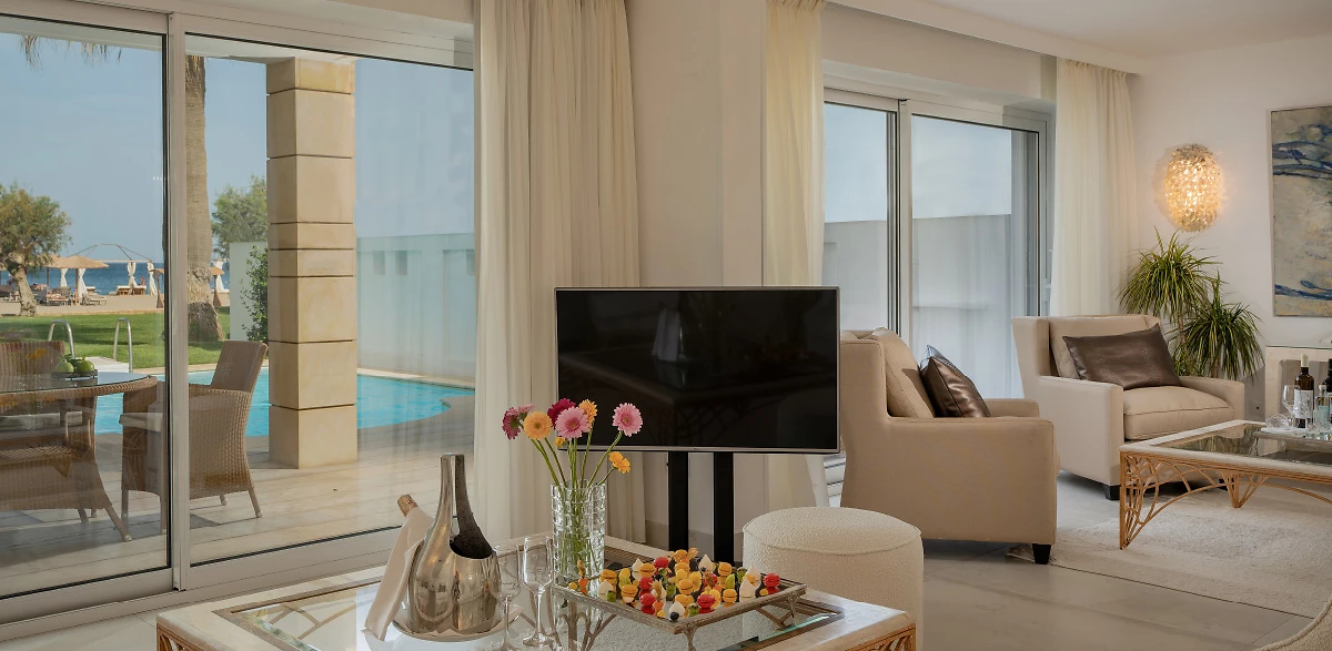 Le Grecotel Creta Palace propose 335 chambres, suites et villas climatisées, toutes d'un excellent standing. Et de la simple chambre double à la luxueuse suite avec piscine privée, tout le monde trouvera son bonheur !