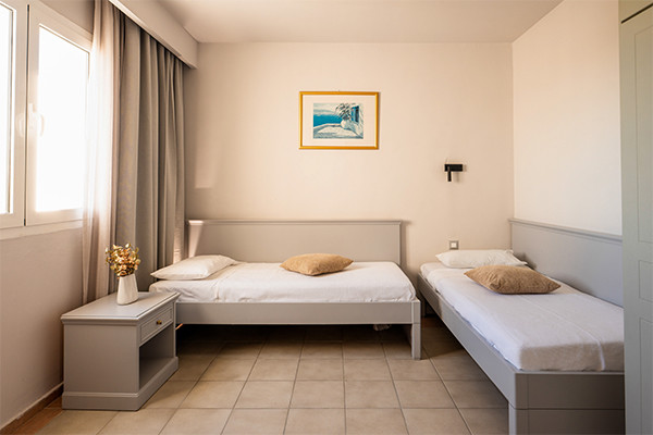 L'hôtel fait partie d'un complexe de 2 hôtels. Il dispose de 107 chambres dans la partie Mare Village et de 219 chambres dans la partie Framissima Mare Blue. La chambre ci-dessous se trouve dans la partie Mare Village. La partie Mare Village est composée d'un bâtiment principal de 2 étages (avec 1 ascenseur) et de 5 bâtiments annexes.