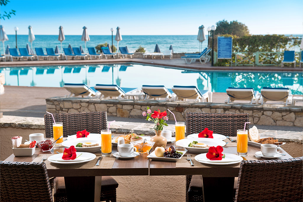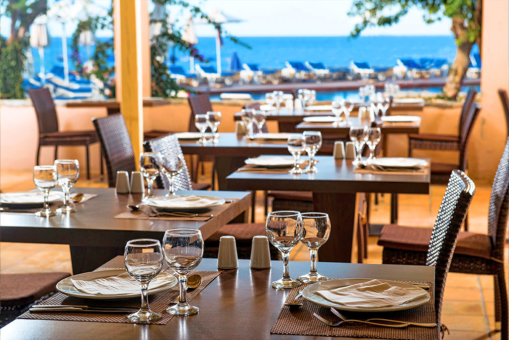 Le restaurant principal « Minoan» vous invite, pour les 3 repas, à découvrir sous forme de buffet la cuisine grecque, italienne, internationale et asiatique au moment du dîner.