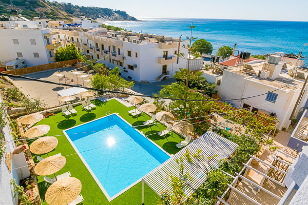 L'hôtel Triton 4* (normes locales) est un hôtel familial entre nature, mer et montagne, idéal pour des vacances relaxantes en couple, entre amis ou en famille dans un cadre calme et reposant. Son point fort est également sa proximité avec l'île de Chrissi et les ilots de Koufonisi aux plages de sable blanc.