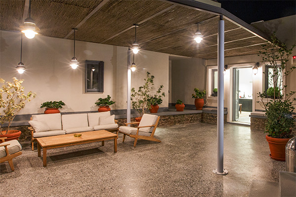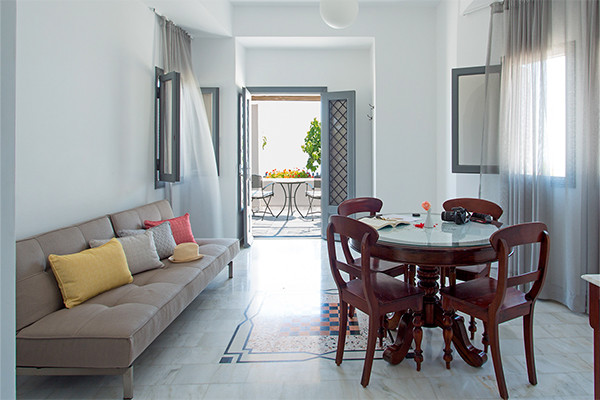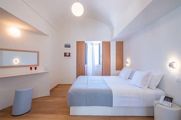 • Suite nuptiale vue Caldera (25-30 m²) : mêmes équipements, salle de bain avec baignoire à remous, véranda aménagée vue Caldera. Capacité maximum : 3 adultes.
