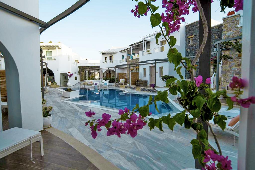 Bienvenue dans votre hôtel 5*: La Mer Deluxe Hotel & Spa ! Véritable refuge pour adultes, ce « resort » est sans doute l'un des meilleurs établissements de l'île. Situé à quelques mètres de la plage de sable noir de Kamari, l'hôtel vous invite à découvrir une architecture et un design élégant avec un ensemble de services de qualité. Pour les activités de jour comme de nuit, le village de Kamari vous propose des bars de plage, restaurants, tavernes et toutes sortes de boutiques.