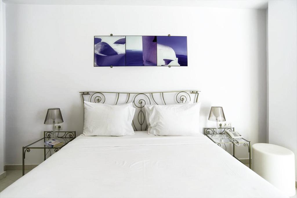 Alliant élégance et confort, les chambres, à la décoration raffinée agrémentée d'objets traditionnels des Cyclades, offrent une très bonne qualité de services pour un séjour relaxant.