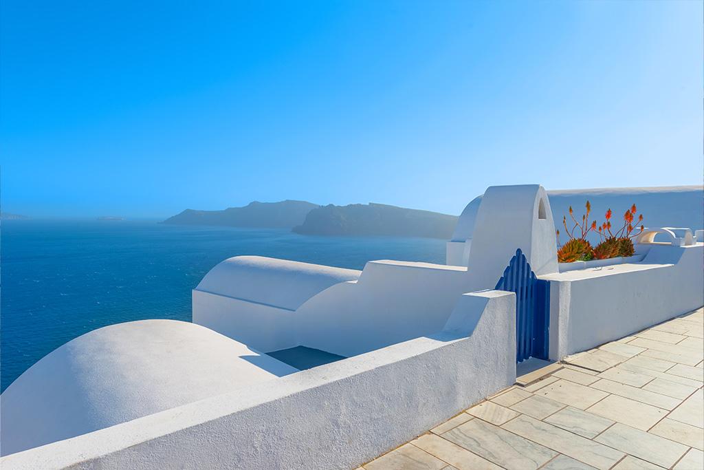 Bienvenue sur l'île de Santorin, considérée comme l'endroit le plus recherché pour une escapade romantique en Grèce. En effet, il existe peu d'endroits dans le monde où vous pourrez profiter d'eaux d'une clarté exquise tout en étant perché au bord d'un énorme volcan actif au milieu de la mer ! La constitution géologique de cette île est exceptionnelle et mystérieuse : malgré les éruptions qui ont provoqué un effondrement de la partie centrale du volcan créant un grand cratère « caldeira », le volcan a réussi à se recréer encore et encore et est toujours actif. Fira est la capitale pittoresque de l'île perchée au sommet de la caldeira, à 260 m d'altitude, offrant une vue imprenable sur la mer Égée et l' île de Nea Kameni. Le long de la caldeira, partez à la rencontre des villages dont le plus renommé est Oia : ce village ressemble à une œuvre d'art car les maisons sont creusées dans la roche de lave. Profitez d'un moment exceptionnel, à la pointe nord de l'île, pour admirer le coucher de soleil face aux volcans.