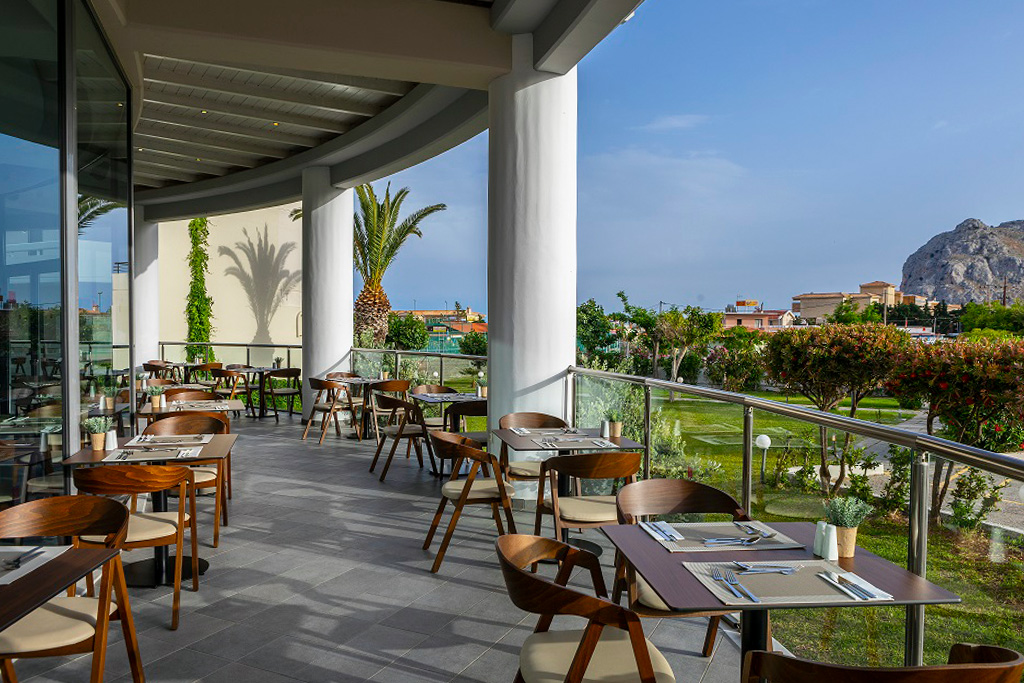 Aéré et baigné de lumière naturelle, le « Blue Horizon Restaurant » vous accueille pour les trois repas de la journée afin de déguster de délicieuses créations grecques et internationales, sous forme de buffet généreux.