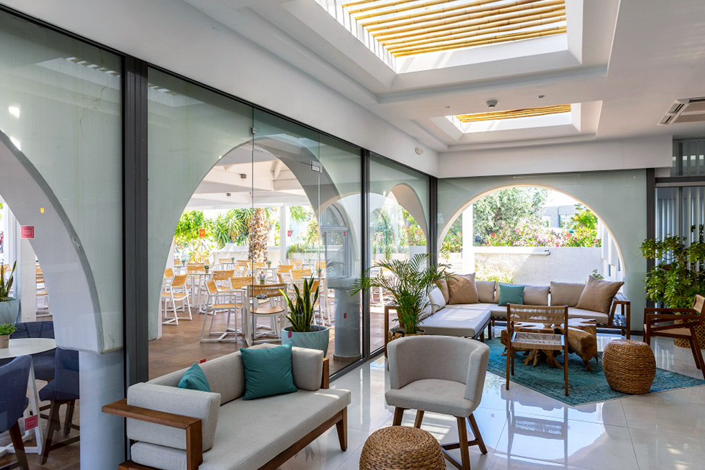 L'« Ariadne Lobby Bar & Terrace », avec sa pergola accueillante, est le cœur animé de l'hôtel. Ouvert de 9h à minuit, il propose une sélection illimitée de boissons locales, cocktails, cafés et thés à savourer en intérieur ou en terrasse.