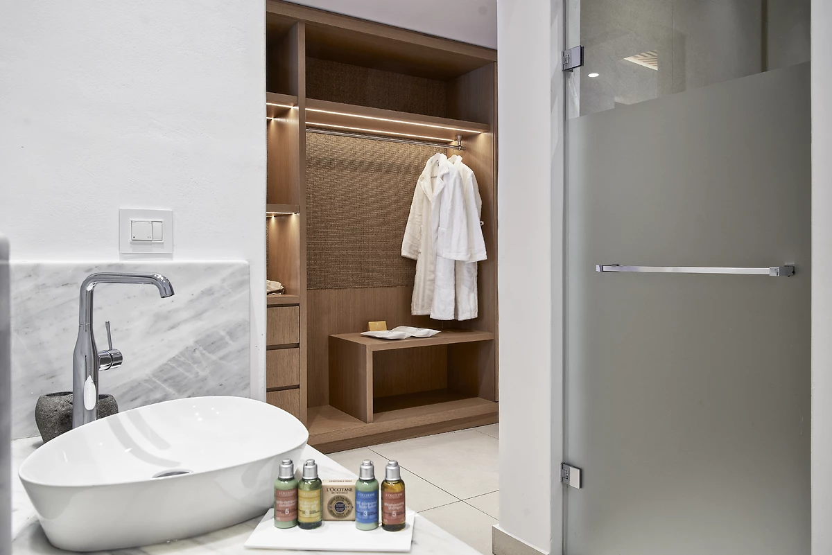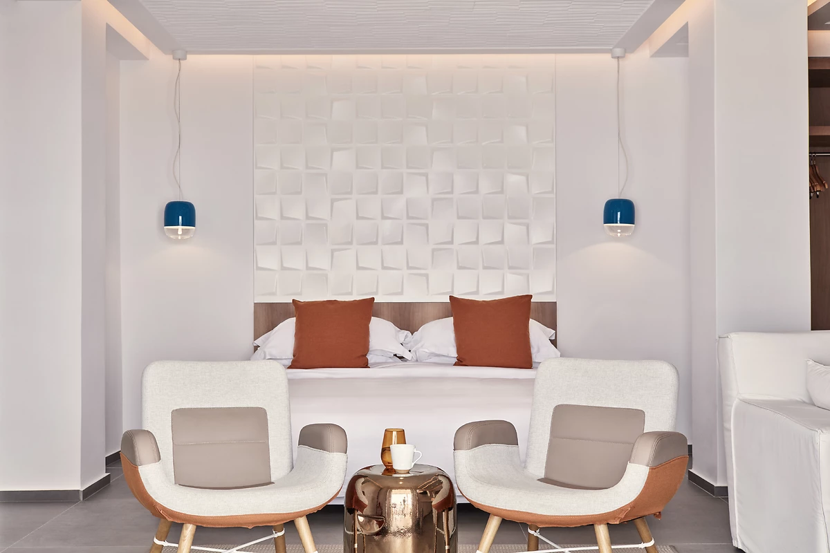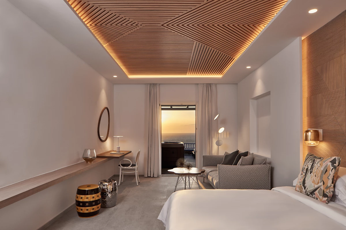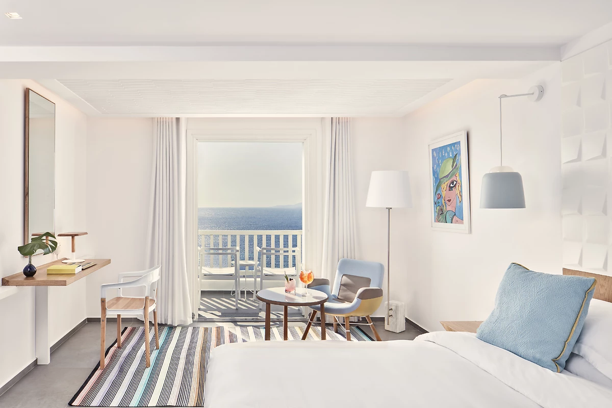 Toutes les chambres et suites du Myconian Korali Relais & Châteaux sont équipées de lit king-size ou de lits jumeaux, d'une salle de bains avec douche ou baignoire avec des articles de toilette Korres™. Les chambres disposent également d'un coffre-fort, du Wifi haut débit gratuit, de la climatisation, d'une machine à café Nespresso™ et d'un balcon/terrasse.