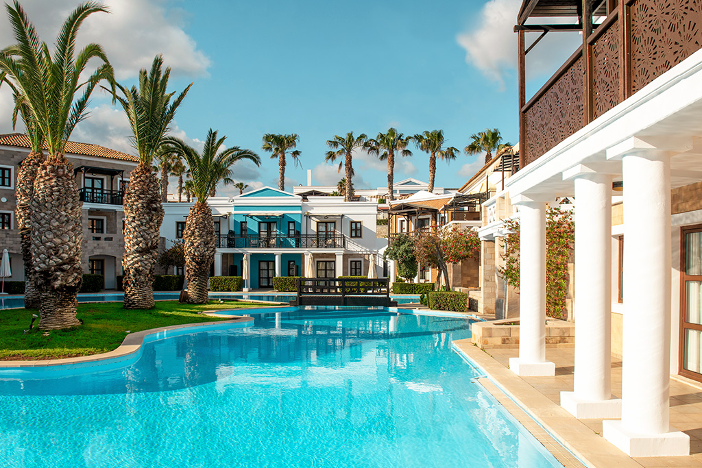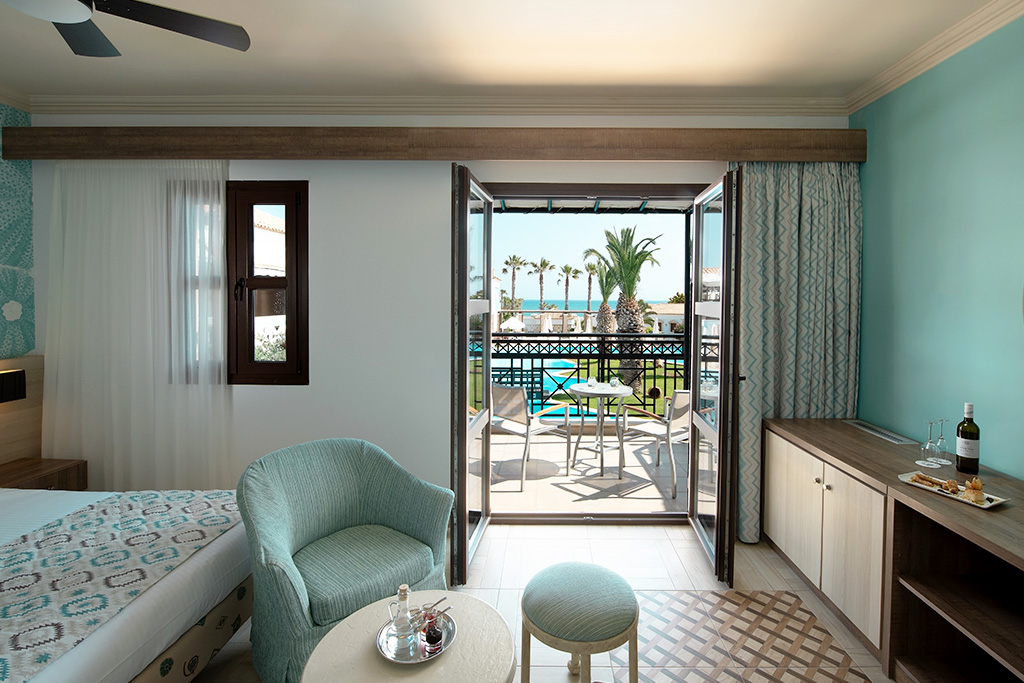 Le Ôclub Select Mitsis Royal Mare 5* dispose de 385 bungalows et suites. Tous les hébergements sont spacieux, lumineux et décorés de couleurs claires, de beige et de bleu.