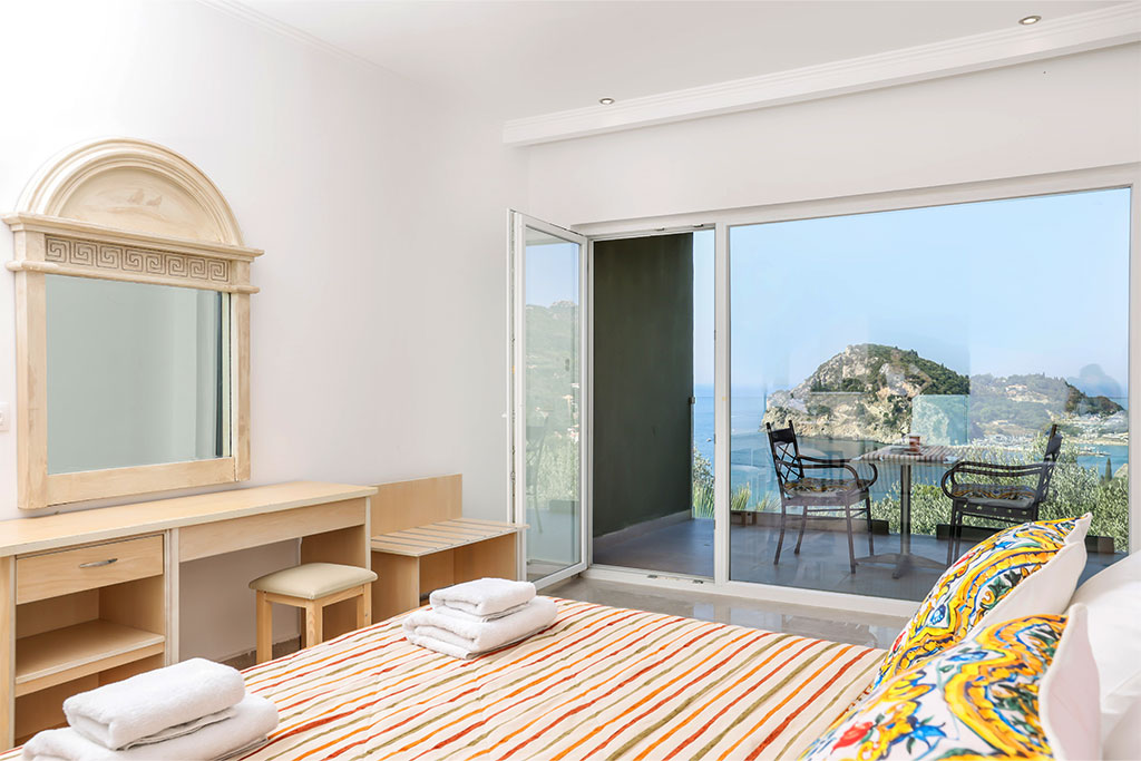 Le Paleokastritsa Palace 5* Adult Only + 16 dispose de 175 chambres et suites élégamment décorées dans des tons doux, chacune disposant d'un balcon donnant sur les jardins luxuriants de l'hôtel.