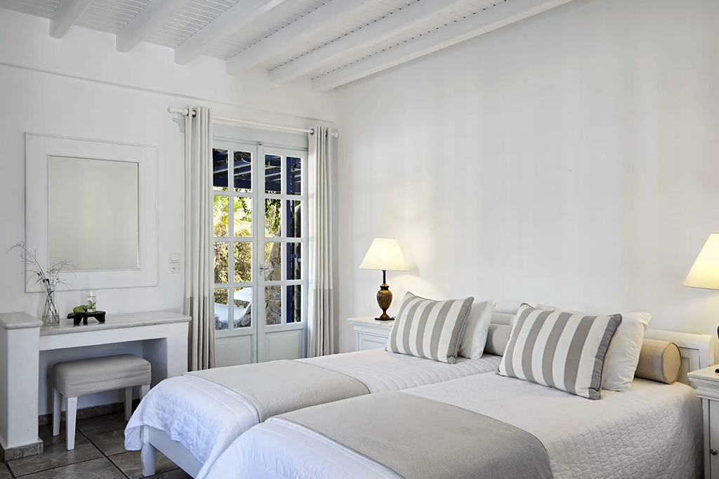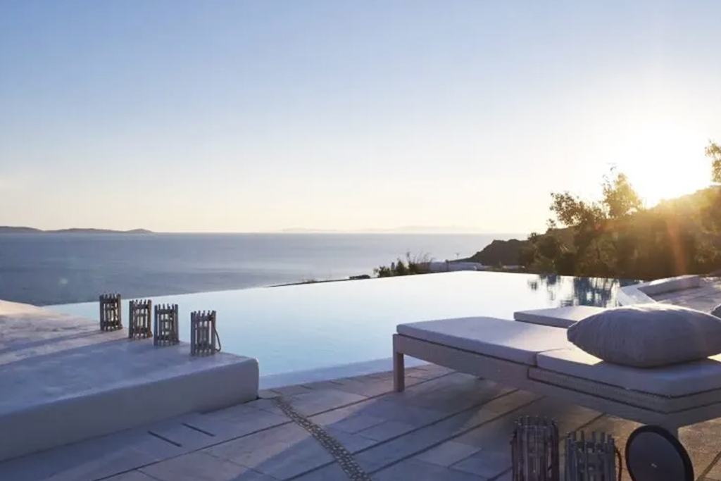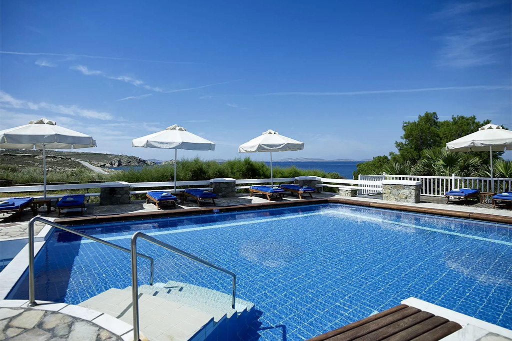 Bienvenue au San Marco Hotel 5* ! Perché sur les hauteurs de la baie de Houlakia, au nord-ouest de Mykonos, cet hôtel offre un cadre paisible avec de superbes vues sur la mer Égée. Inspiré de l'architecture cycladique, il séduit par son atmosphère élégante et authentique, idéale pour une parenthèse de détente loin de l'effervescence tout en restant proche des incontournables de l'île. Les chambres, confortables et lumineuses, s'intègrent harmonieusement dans le décor blanc et bleu typique de Mykonos. Vous apprécierez la piscine extérieure avec vue panoramique, les espaces de détente, ainsi qu'une restauration aux saveurs méditerranéennes. Grâce à son emplacement privilégié, son ambiance sereine et son charme cycladique, cet hôtel est l'adresse idéale pour découvrir Mykonos entre farniente, panoramas marins et escapades festives.