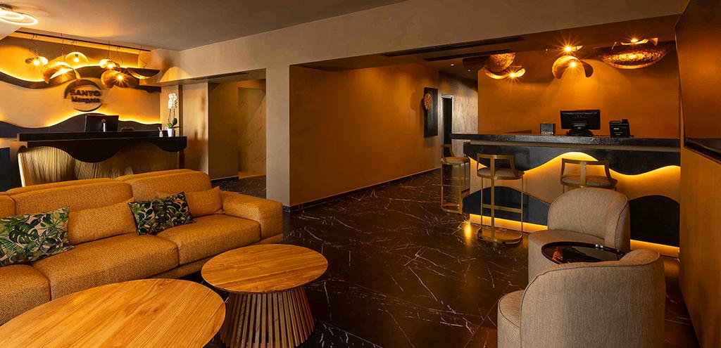 Bienvenue au Santo Mångata Boutique Hotel 5* Adult Only + 17 ! Situé au sud-est de l'île, entre la pointe Sud d'Exomitis et le Mesa Vouno, ce petit boutique-hôtel de 24 chambres est la destination idéale pour la détente au cœur de Perissa. Décoré avec des matériaux naturels qui reflètent l'esthétique traditionnelle de la région, l'établissement offre une expérience de vacances inoubliable dans un espace luxueux, intime et respectueux de l'environnement.