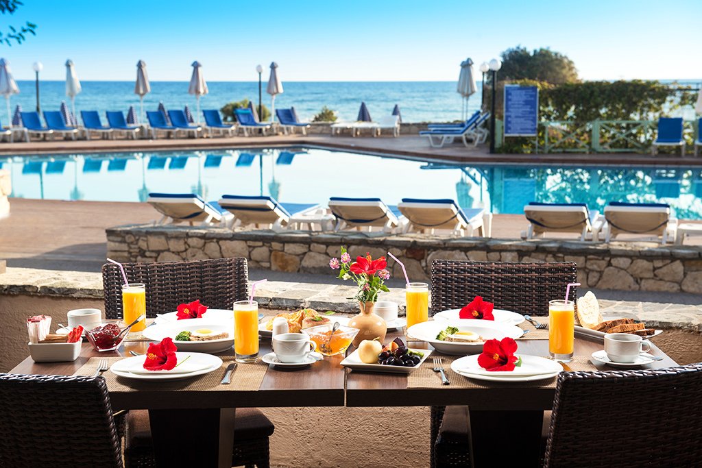 Le restaurant principal « Minoan**»** vous invite, pour les 3 repas, à découvrir sous forme de buffet la cuisine grecque, italienne, internationale et asiatique au moment du dîner.