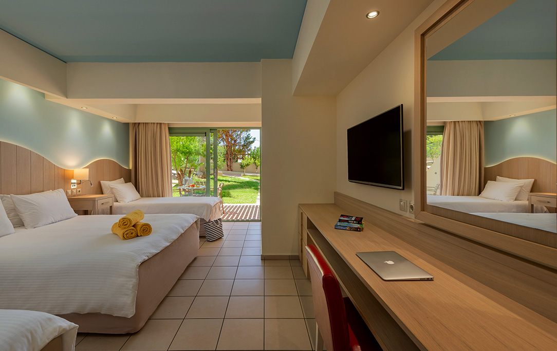 La Chambre Famille Supérieure dispose des mêmes équipements que la Chambre Standard avec deux chambres séparées.