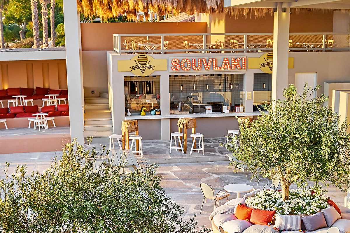 Ce resort luxueux et moderne, avec ses 313 hébergements, offre une immersion totale dans l'art de vivre méditerranéen. Grâce à son orientation plein l'ouest, vous pourrez admirer chaque soir les couchers de soleil sur la mer Égée. Vous profiterez également de :