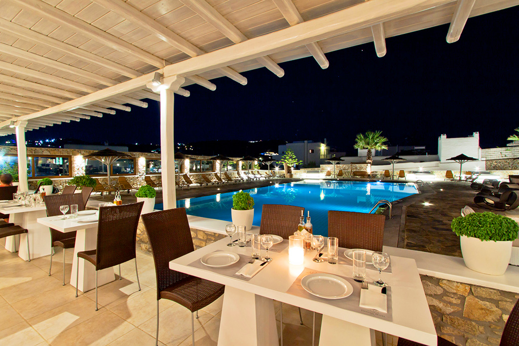 • Dirigez-vous vers le restaurant principal « Aleka » de l'hôtel. Avec vue sur la piscine de l'hôtel, savourez votre déjeuner ou dîner en choisissant parmi une carte inspirée mettant à l'honneur les saveurs grecques et méditerranéennes. Le soir, le restaurant Aleka se transforme en un restaurant à la carte spacieux et élégant, proposant une sélection de vins raffinés et une cuisine grecque maison, le tout accompagné d'un service impeccable. De délicieuses entrées, des salades fraîches et des fruits de mer d'une fraîcheur incomparable vous satisferont.