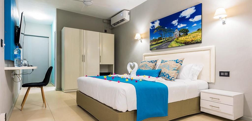 Bienvenue à l'hôtel Azur Paradise 3* Adult Only (+15) ! Situé à Grand Baie, à quelques mètres de la plage, ce petit hôtel de charme vous accueille dans une ambiance calme et agréable dans un cadre contemporain. L'établissement dispose d'une piscine extérieure et d'un restaurant sur le « rooftop ». Venez vous immerger dans la culture mauricienne où sourires, hospitalité, melting-pot culturel, cuisine colorée et parfumée s'associent pour vous offrir un délicieux et charmant mode de vie auquel vous ne pourrez qu'adhérer.
