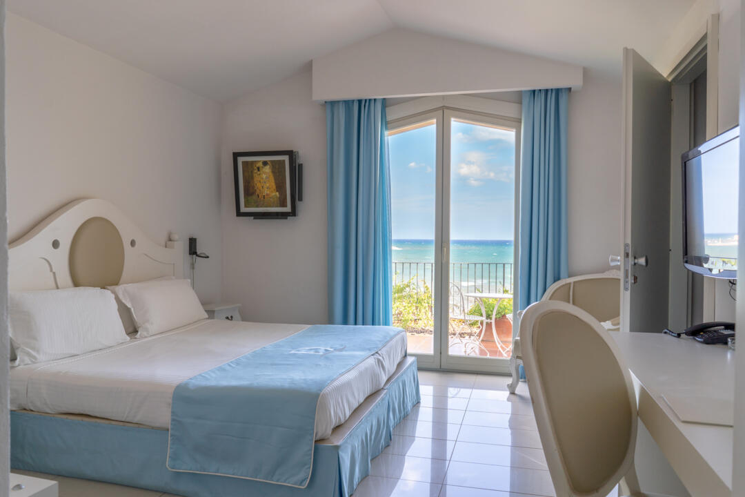 Les chambres de l'hôtel se répartissent harmonieusement entre le corps central et d'autres bâtiments à proximité, offrant divers types d'hébergement adaptés à tous les besoins. Chaque chambre est équipée d'une salle de bain privée avec douche ou baignoire, d'un sèche-cheveux, d'une télévision, de l'air conditionné, d'un coffre-fort et d'un mini-réfrigérateur. Dans le cadre de votre séjour, vous séjournerez en chambre standard d'environ 18m².En supplément vous pourrez opter pour une chambre prestige vue mer.