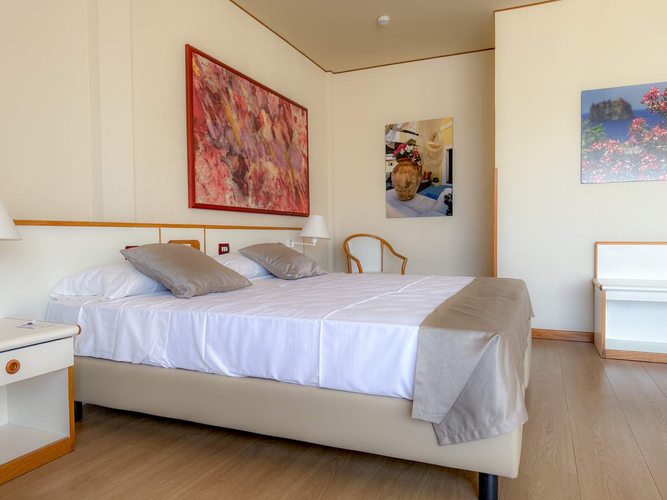 La chambre Supérieure Village de l'hôtel Torre Normanna Hotel & Resort invite à la détente dans un cadre lumineux et apaisant, où le style méditerranéen se mêle à des touches chaleureuses pour créer une atmosphère douce et accueillante. Depuis votre terrasse ou balcon, vous pourrez profiter du jardin ou du village, bercé par le parfum des pins et des oliviers.