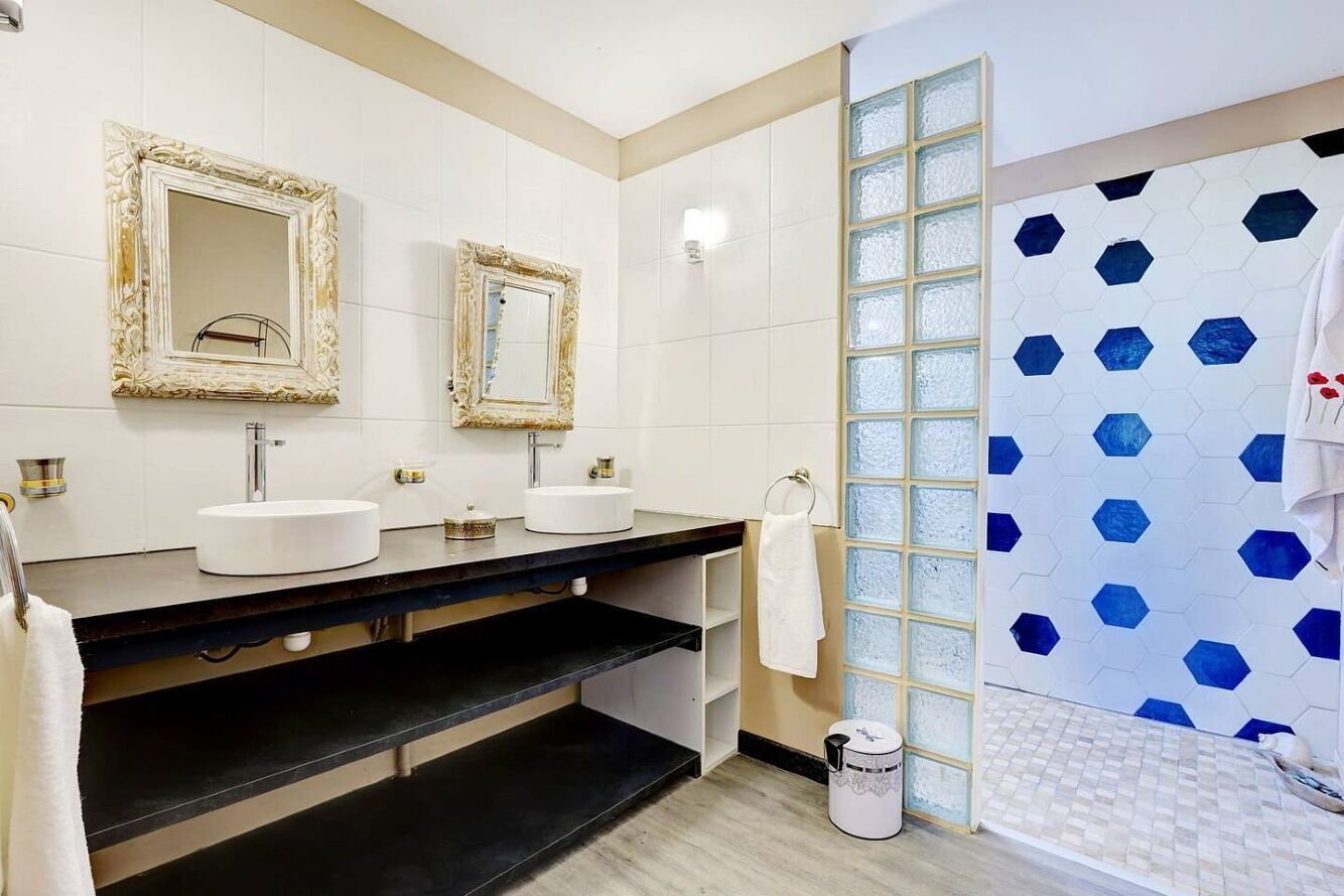• 3 chambres climatisées (3 chambres double) avec chacune sa salle de bain attenante