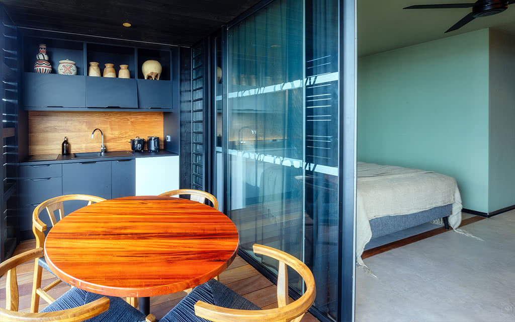 5 Villas. Capacité : 6 adultes + 2 enfants + 3 bébés (-3 ans révolus)Superficie : 102 m² + terrasse de 52 m²Équipements : Lits 180×200 cm, terrasse avec cuisine aménagée et table à manger, chaises longues, piscine de 12 m², salon avec canapé-lit 160x200 cm, 4 salle de bains avec douche à l'italienneSituées en première ligne face à l'océan, ces villas offrent un panorama exceptionnel. Elles comprennent trois chambres doubles avec chacune une salle de bains équipée d'une douche à l'italienne et d'une douche extérieure à ciel ouvert. Le séjour spacieux avec canapé-lit s'ouvre sur une terrasse aménagée avec cuisine extérieure et coin repas. La piscine privée, entourée de chaises longues, invite à la détente.