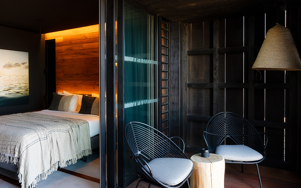 La chambre Deluxe Horizon offre une vue panoramique sur l'océan et dispose d'une ambiance cocooning avec un décor chic, tropical et contemporain. Elle est équipée d'une terrasse, d'une salle de bain avec douche à l'italienne et d'un lit King-size.