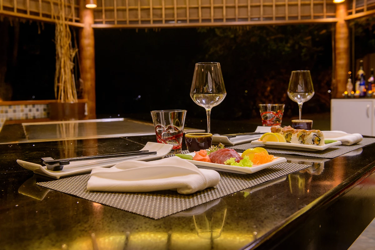 À Umi Yaki, vivez une expérience gastronomique japonaise avec teppanyaki : le chef prépare les plats sous vos yeux sur plaque chaude, non sans un certain sens de la mise en scène.