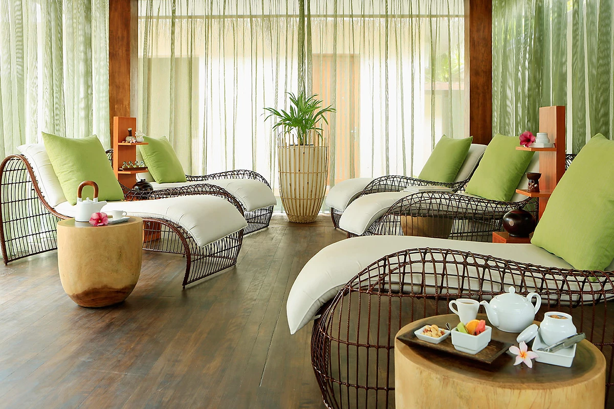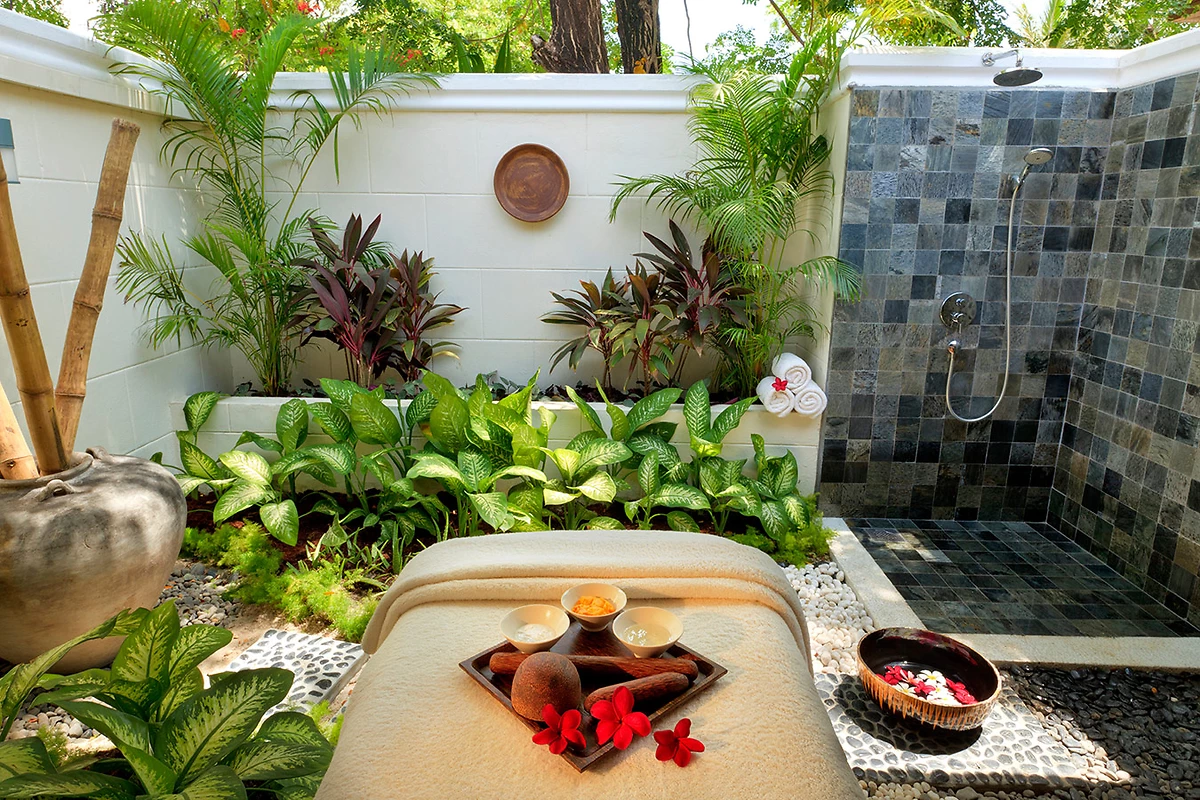 180 chambres, bungalows et villas avec climatisation, terrasse privée et douche extérieure.