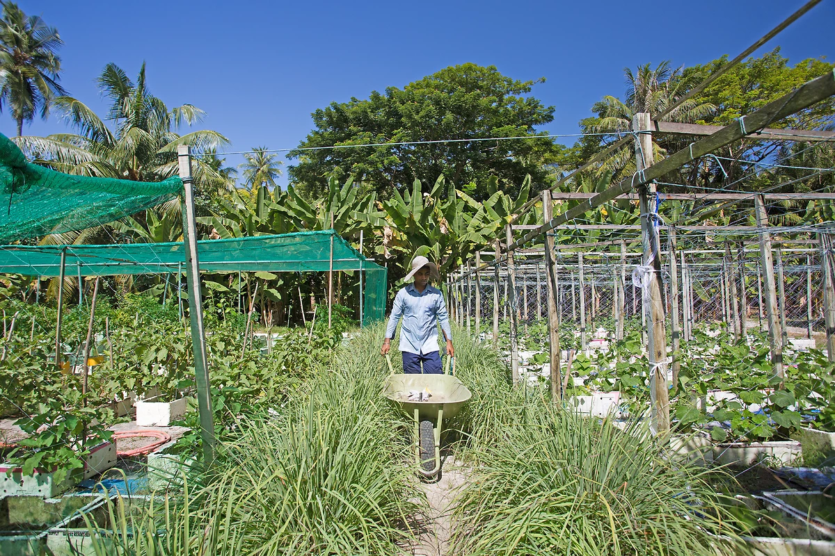 SaveurLe Meeru Maldives Resort Island peut se targuer de posséder un potager de choix. Soigneusement tenu au cœur de l'île, on savoure ses légumes et herbes aromatiques dans les 6 restaurants de l'île.