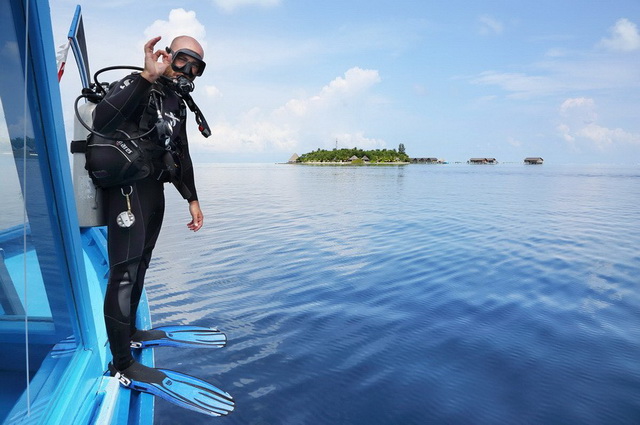 A 25 min en hydravion de Malé, une île entièrement privée entre lagon turquoise et la barrière de corail toute proche offrant de nombreux sites de plongée d'une grande variété.