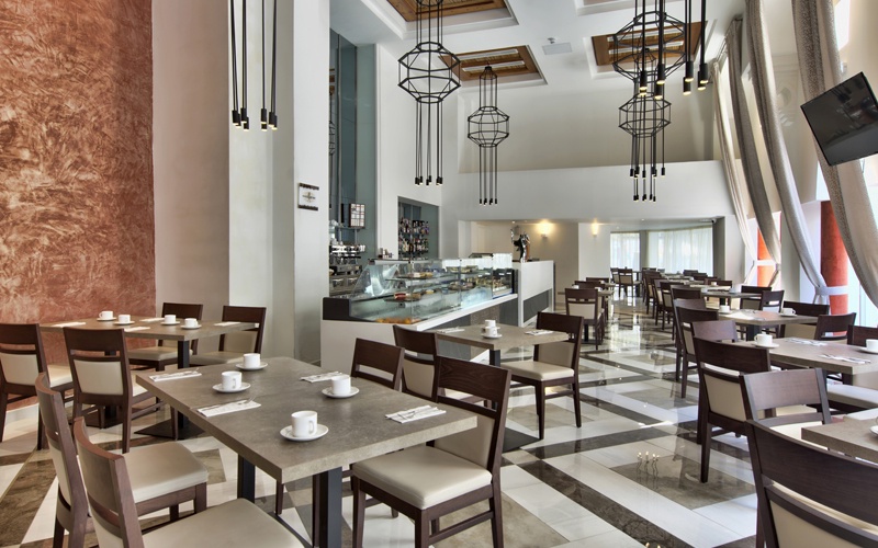 5 restaurants, le « Guéliz » restaurant principal propose des repas sous forme de buffet, le « salia » ouvert pour les soirs de week end propose des menus à partager, le « Tagine » restaurant à la carte avec une cuisine marocaine et indienne, le « Yushan » (ouvert de juin à octobre 4 soirs par semaine) est un à la carte asiatique et le « Q-Zins » restaurant à la carte avec une cuisine chinoise, sushi, pizza etc (ouverture prévue en été 2022). 2 bars : Le café Maroc proposant des boissons chaudes et froides accompagnés de pâtisseries et le Taza sky bar situé sur le toit de l'hôtel.
