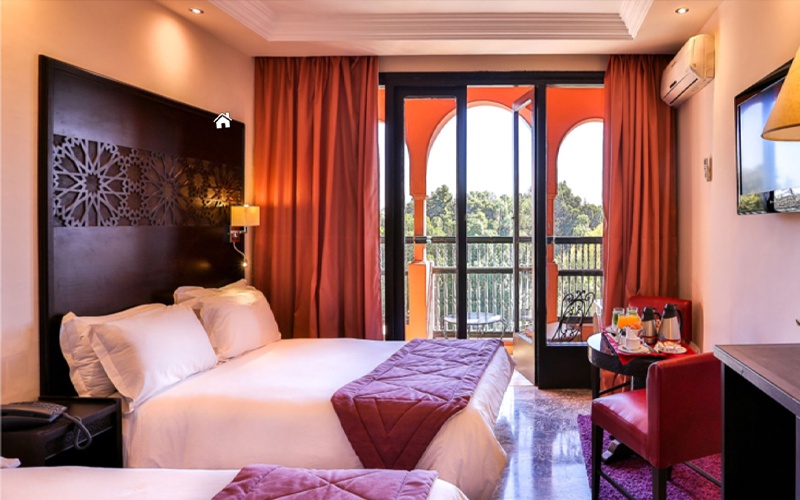Séjour En petit déjeuner Situé en plein coeur du quartier résidentiel de Marrakech, « l'hivernage », à 10 mm de place « Jemaa El Fna » du centre-ville, et de la Koutoubia... L'hôtel s'ouvre sur un jardin paysagé de 7000 m2, véritable havre de fraîcheur ... idéal pour un séjour en toute quiétude, proche du centre de Marrakech.