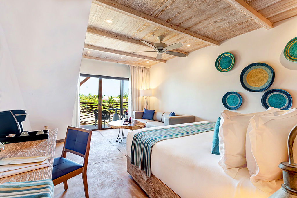 Le Mystique Holbox by Royalton 4* compte 38 Juniors Suites qui incarnent le luxe tropical à l'état pur. Spacieuses, lumineuses et élégamment décorées, elles offrent balcon ou terrasse privée, certaines avec vue sur l'océan ou accès direct à la piscine.