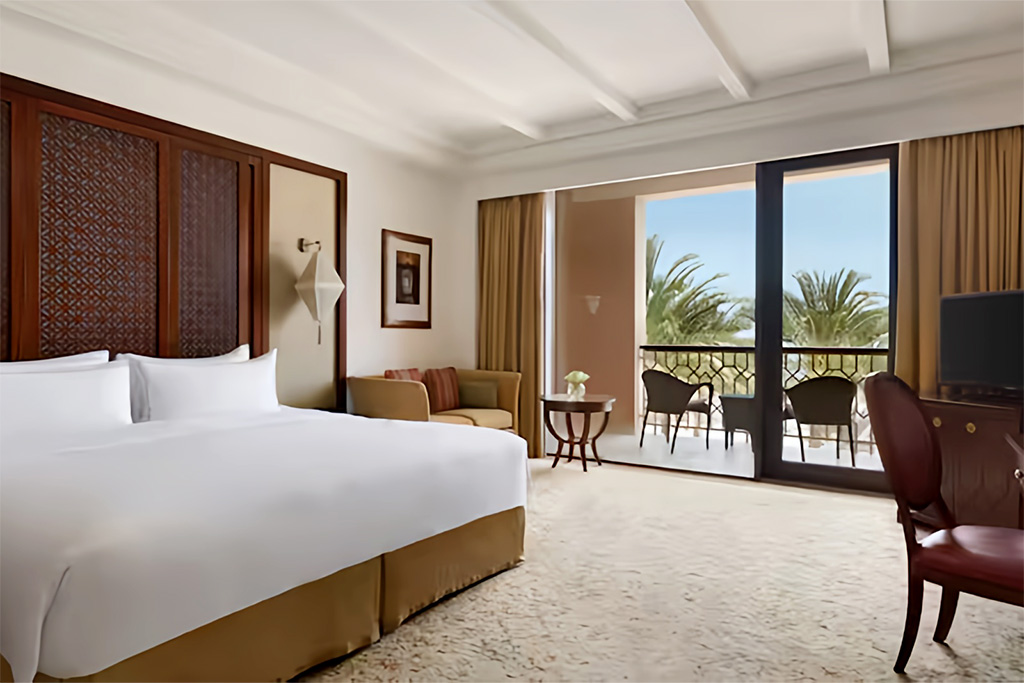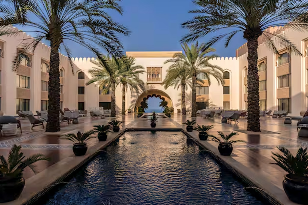 L'hôtel Al Husn Hotel Muscat 5* Adult Only +16 dispose de 180 chambres et suites offrant une vue sur la piscine à débordement ou sur les montagnes escarpées environnantes. Contemporaines, elles sont décorées d'authentiques œuvres d'art omanaises inspirées des palais arabes.