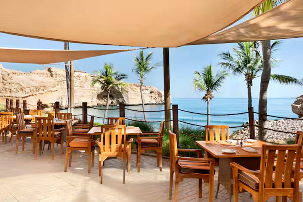 Spécialisé dans les fruits de mer frais grillés, le « Mahhara Beach Restaurant » vous accueille face à une vue spectaculaire sur le golfe d'Oman. L'adresse est idéale pour un déjeuner savoureux, avec également un choix de salades légères, de sandwichs et de boissons rafraîchissantes.