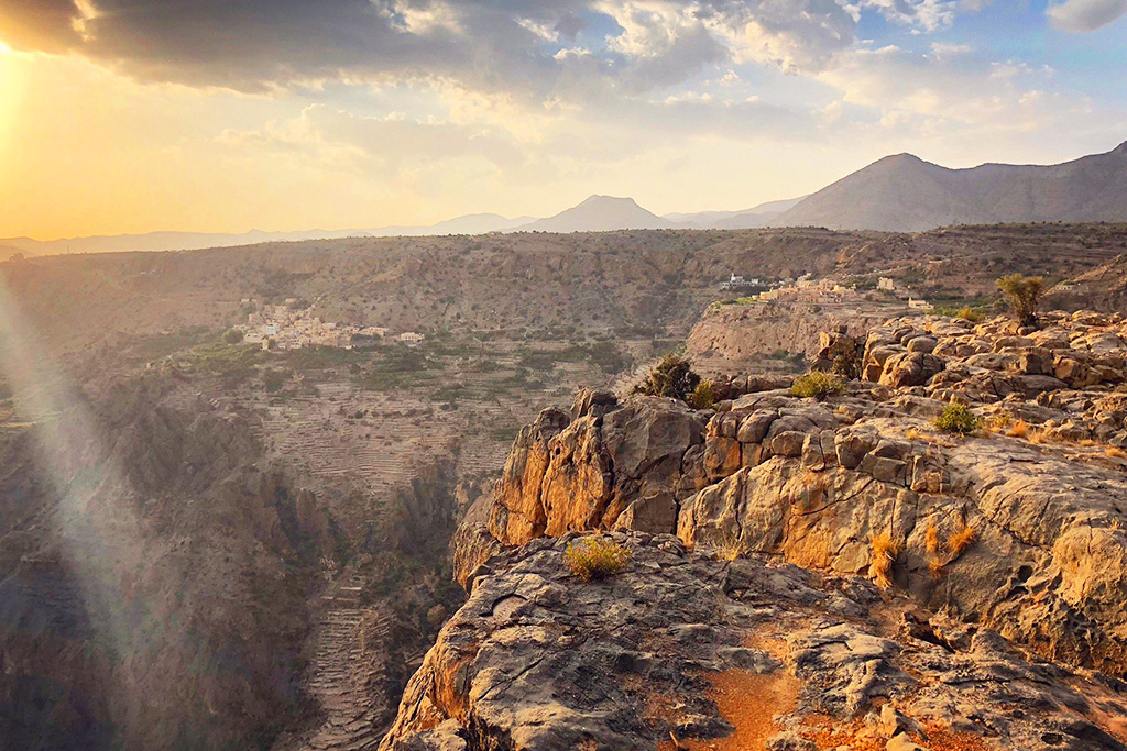 Cap sur Oman ! Ancienne capitale du sultanat, Nizwa séduit par son authenticité et son riche patrimoine culturel. Dominée par son impressionnant fort du XVIIe siècle, la ville offre une plongée fascinante dans l'histoire d'Oman. Son souk traditionnel, réputé pour son marché aux bestiaux et son artisanat en argent, invite à une immersion vivante au cœur des traditions omanaises. À quelques kilomètres, les montagnes du Jebel Akhdar, surnommées la "Montagne Verte", dévoilent un décor spectaculaire de canyons, de villages perchés et de cultures en terrasses où poussent roses, grenadiers et abricotiers. Entre patrimoine, nature et panoramas grandioses, la région promet une expérience authentique et dépaysante au cœur d'Oman.