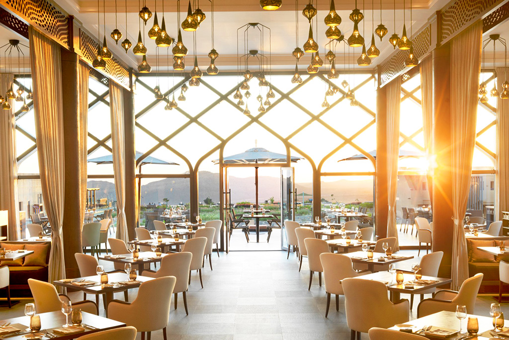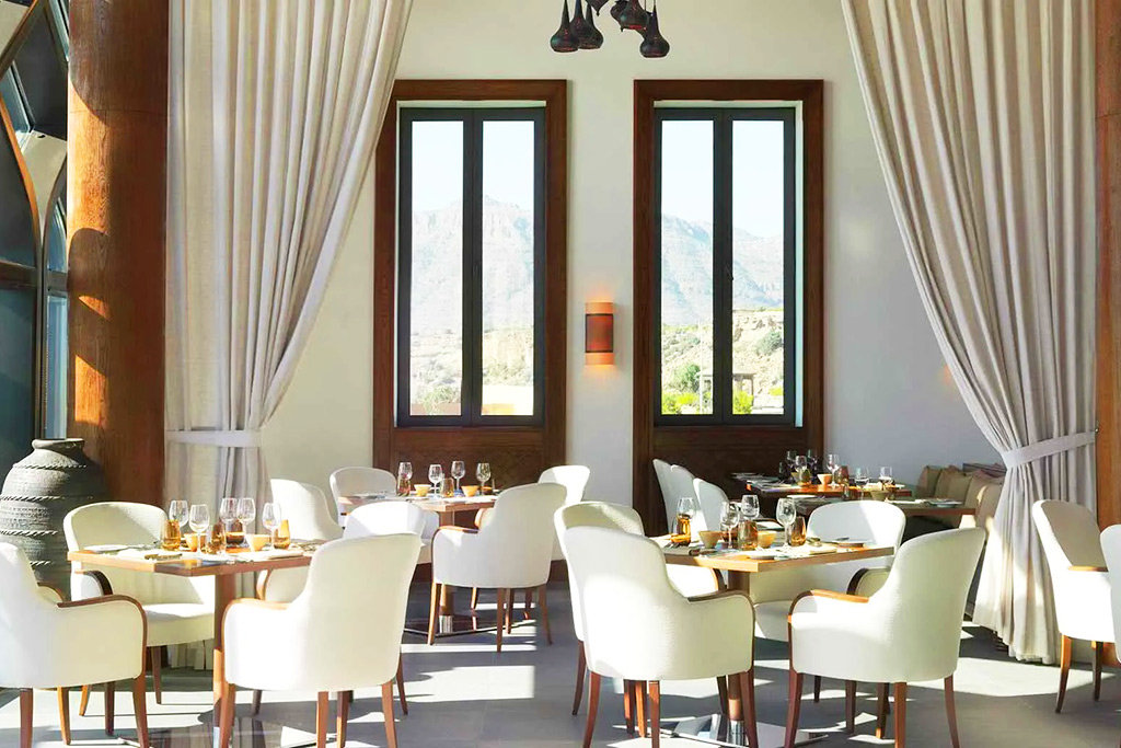 Découvrez la gastronomie orientale d'Oman au « Al-Qalaa ». Aux allures du château de Khasab à Musandam, le restaurant vous accueille pour le dîner et met à l'honneur des recettes authentiques avec des ingrédients frais et locaux.