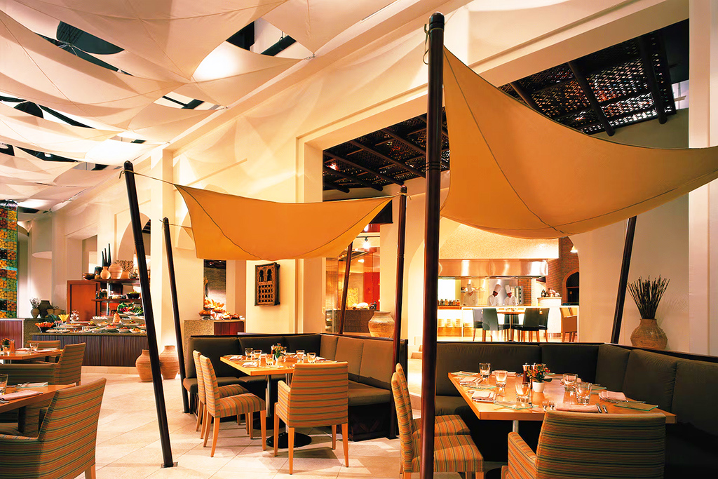 • Le « Al Tanoor » vous sert des plats classiques de la région du golfe Persique, dans une ambiance traditionnelle omanaise inspirée des souks et des villages locaux. L'intérieur est décoré de tentes arabes, de poteries et de couleurs vives que l'on retrouve souvent dans les maisons omanaises. Buffet.