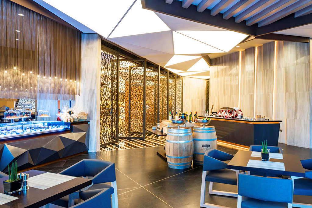 • L'« Amwaj Lounge » est un havre de détente et de gourmandise, célèbre pour son thé gourmand de l'après-midi et ses pâtisseries françaises classiques.