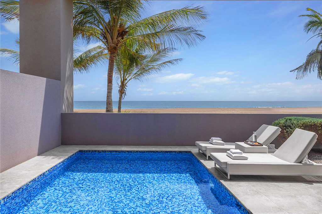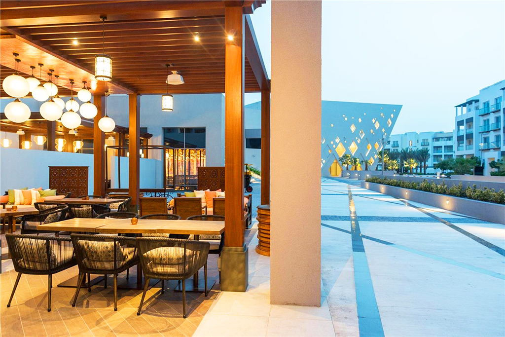 • Le « Pool Bar » est l'endroit idéal pour se détendre et profiter du soleil tout en sirotant des boissons rafraîchissantes et des smoothies avec vue panoramique sur le golfe d'Oman.