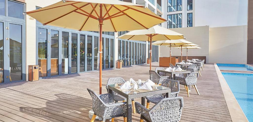 En intérieur ou en extérieur, le « Taybat Restaurant » vous accueille pour le petit-déjeuner, le déjeuner et le dîner et vous propose à la fois des menus à la carte et des buffets avec « show-cooking ». Découvrez un monde de saveurs occidentales, asiatiques et moyen-orientales. Des jus de fruits et légumes frais, des mocktails, des cafés et des thés sont gastronomiques sont disponibles.