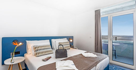 124 chambres climatisées avec balcon aménagé et équipées d'une salle de bains avec douche et sèche-cheveux, télévision à écran plat, téléphone, connexion Wifi gratuite, coffre-fort et mini bar (payant). Les junior suites disposent d'un canapé-lit. Capacité : - Chambre standard : 2 adultes - Chambre standard vue mer : 2 adultes - Junior Suite : 2 à 3 adultes - Junior Suite vue mer : 2 adultes