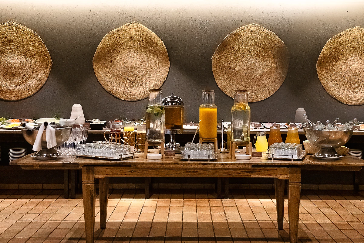 Gustatio met à l'honneur la cuisine portugaise revisitée par les influences méditerranéennes (buffet pour petits déjeuners et dîners) ; Topos propose un menu néo-grec aux déjeuners et dîners ; Sora Food Truck (réservé aux adultes), le restaurant-bar nouvellement installé sur la plage, sert des fruits de mers accommodés de manière originale et des plats légers (déjeuners et dîners) ; Blend Nikkei and Wine installé sur le lac émoustillera vos sens et vos papilles avec une cuisine japonaise (dîners). Parmi les bars, Raw Gastro Bar, sert cocktails et champagne avec set de DJ ; Estrella bar, au milieu des 3 piscines offre une cuisine gourmande portugaise toute la journée.